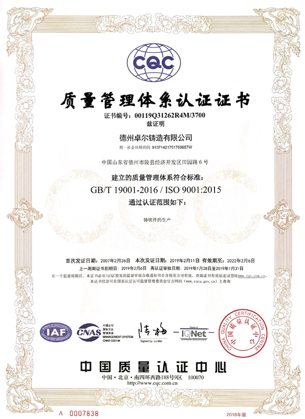 質(zhì)量管理體系認(rèn)證證書