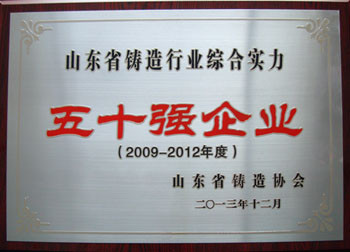 卓爾公司榮獲“山東省鑄造行業(yè)綜合實力2009-2012五十強企業(yè)”稱號